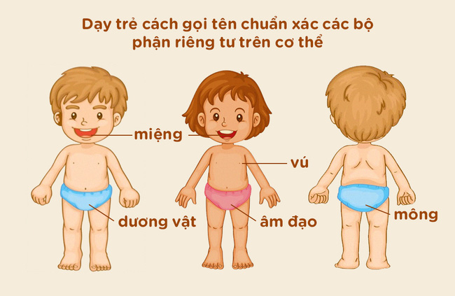 Không dùng các tên gọi ngộ nghĩnh để chỉ những bộ phận trên cơ thể. Bố mẹ cần dạy con gọi chính xác tên của các bộ phận đó.