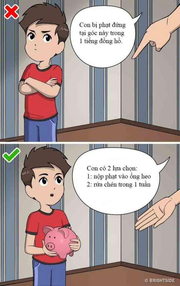 Bạn có thể đề xuất hình phạt đóng tiền vào lợn đất hoặc rửa bát trong một tuần. Hãy để con có quyền lựa chọn, ngay cả khi con mắc sai lầm.