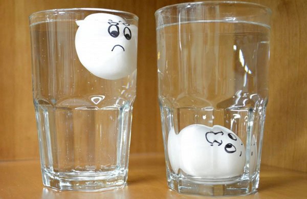 Quả trứng trong cốc thứ 2 nổi là do mật độ phân tử của nước muối cao hơn so với mật độ phân tử của vỏ trứng. Vì vậy, các phân tử nước muối đã nâng đỡ quả trứng nên nó không thể chìm xuống được.