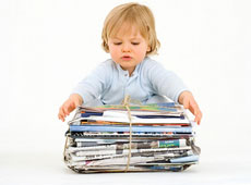 "Rác": Cho con giúp bố mẹ một tay trong việc tái chế báo, tạp chí và thư rác. Bạn đừng cho đó là công việc quá to tát với bé vì thật ra có thể làm nó giống như một trò chơi phân loại, bỏ những món đồ khác nhau vào trong những hộp hay những chỗ riêng biệt. Hãy phân công cho con bé bỏng của mình nhiệm vụ quan trọng này nhé.
