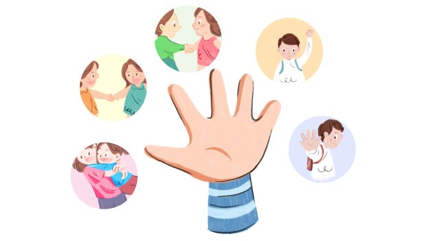 Mỗi một ngón tay là một quy tắc được đặt ra, điều này sẽ giúp trẻ dễ dàng ghi nhớ khi giáo tiếp với người khác, ba mẹ hãy cùng bé xem và thực hiện nhé.