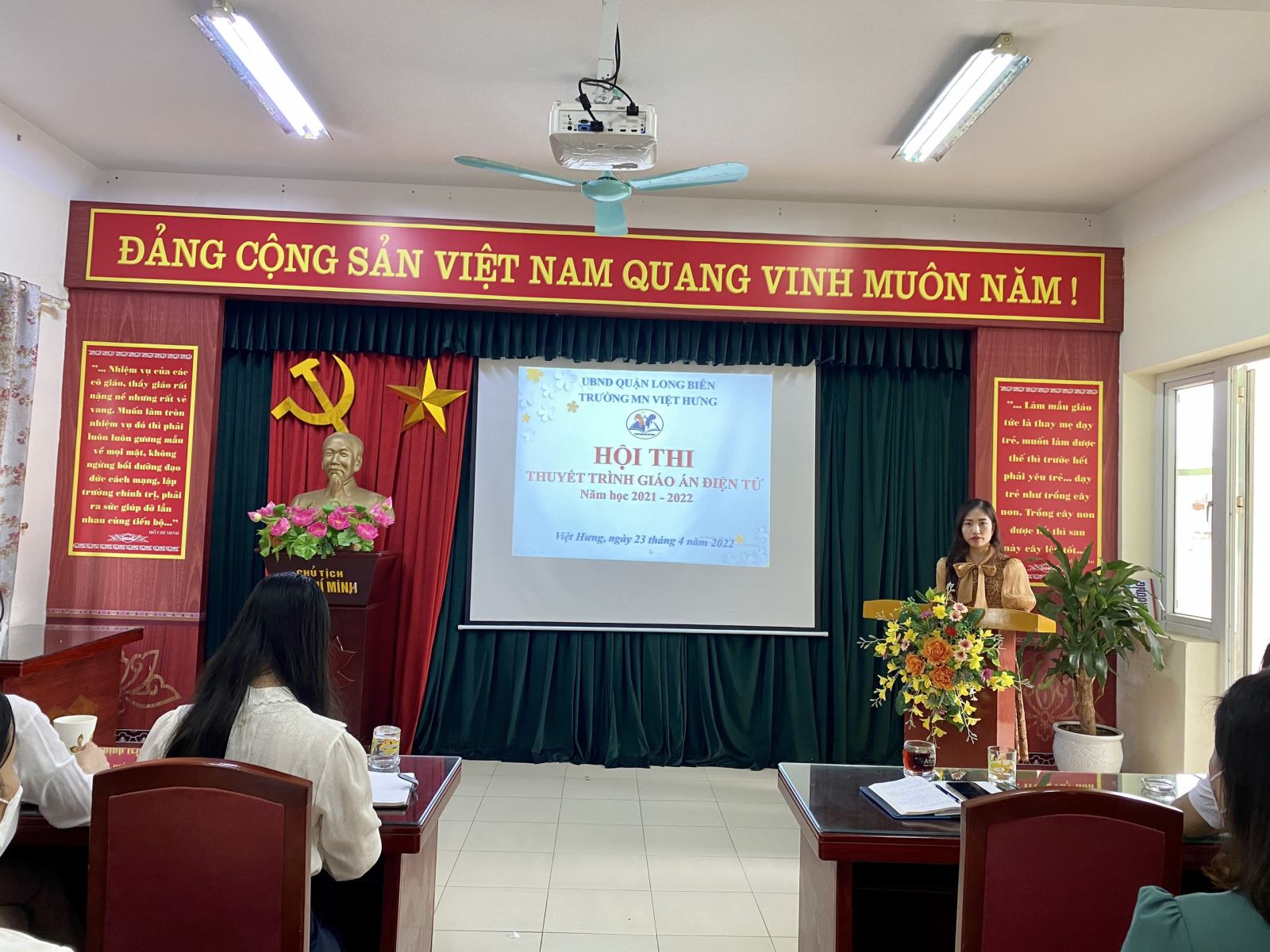 Sơ khảo Cuộc thi Thiết kế bài giảng E-Learning cấp trường năm học 2021 - 2022 của trường mầm non Việt Hưng đã thành công tốt đẹp. Tất cả các thành viên tham dự đều rất vui và học hỏi được thêm nhiều kinh nghiệm trong giảng dạy và thiết kế bài giảng điện tử. Từ thành công của cuộc thi này, trường mầm non Việt Hưng sẽ duy trì cuộc thi hàng năm với mục đích tạo ra sân chơi chuyên môn phù hợp nhằm rèn luyện kĩ năng thiết kế bài giảng ở thời đại công nghệ số hiện nay cho tất cả cán bộ, giáo viên trong nhà trường./.