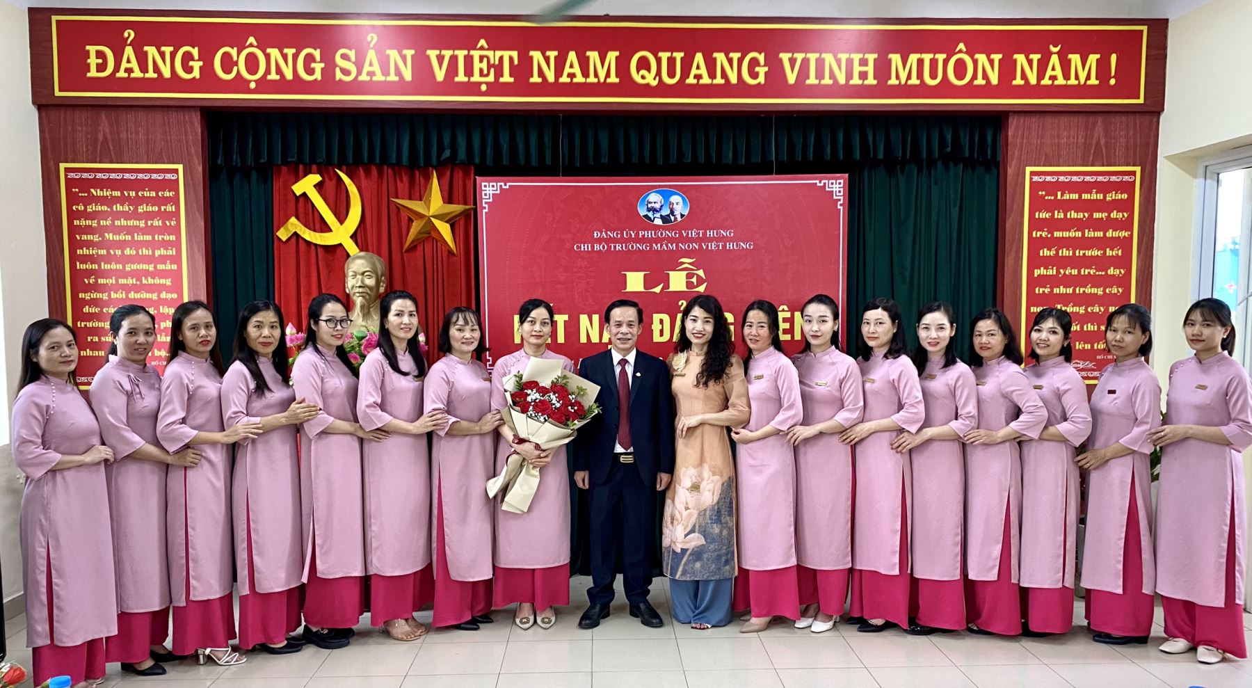 Đến tham dự buổi Lễ, chỉ đạo và động viên, tập thể Chi bộ nhà trường vinh dự được đón tiếp Đ/c Đinh Quang Luận - QUV - Bí thư Đảng ủy phường Việt Hưng. Về phía nhà trường có Đ/c Đặng Thị Thanh Xuân - Bí thư chi bộ - Hiệu trưởng nhà trường; Đ/c Nguyễn Thị Huyền Hạnh - Bí thư chi đoàn nhà trường, các đ/c trong Cấp uỷ cùng toàn thể các đ/c Đảng viên trong chi bộ có mặt đông đủ.