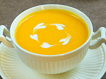 Bước 4: Khoai và bí chín mềm nhừ thì cho tất cả vào máy xay sinh tố, xay nhuyễn, nếu đặc quá thì bạn cho thêm một chút nước nữa vào xay đến khi hỗn hợp mịn mượt.