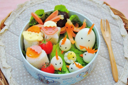 Phiên bản khu vườn mini với hình ảnh đàn gà thật đáng yêu được mẹ tái hiện trong bữa cơm của bé trông bắt mắt, vui nhộn và hấp dẫn. Chắc hẳn bé sẽ thích thú với bữa ăn như thế này lắm đấy. Chút sáng tạo thổi hồn cho bữa ăn thường ngày trở nên sinh động, đáng yêu thu hút bé, bé sẽ hào hứng chờ đợi những bữa ăn do chính tay mẹ làm.