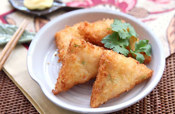 Bánh mì bỏ viền ngoài, cắt thành 4 hình tam giác.