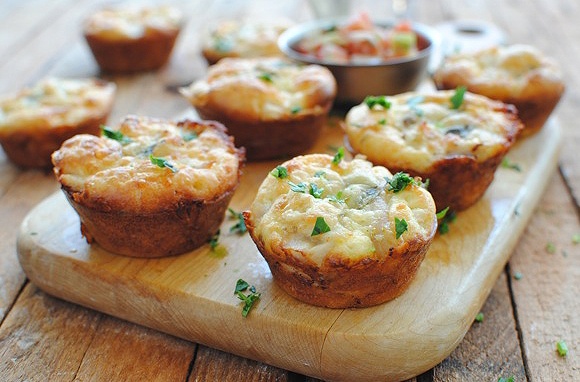 - Sau đó, dùng khay bánh (khay dùng làm bánh muffin), đổ 1 thìa hỗn hợp trứng bột vào một cốc, thêm 2 thìa gà trộn, cuối cùng thêm 1 thìa hỗn hợp trứng bột. Làm lần lượt hết các cốc trên khay bánh.