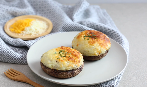 Làm nóng lò nướng ở nhiệt độ 200 độ C, cho khoai nhồi nấm vào trong lò nướng khoảng 10 phút thì lấy ra