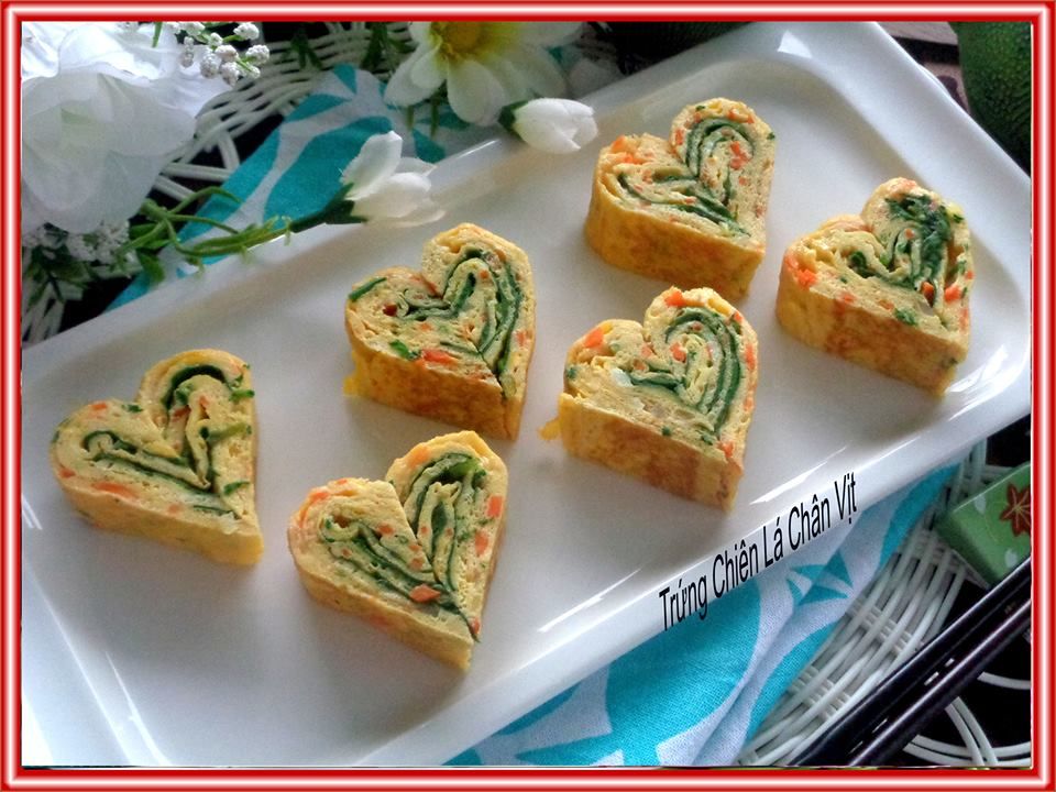 - Trình bày: Xếp trứng uộn lá chân vịt ra dĩa. Món này dùng với cơm hay làm cho bé ăn sáng vừa ngon vừa đủ chất.
