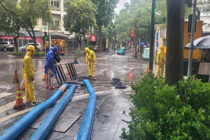 Một số hình ảnh các công nhân thoát nước đang ứng trực từ chiều qua (6/9) trên nhiều tuyến phố thường xảy ra ngập úng: