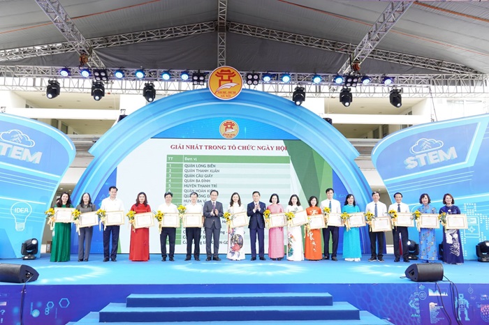 Phát biểu bế mạc, Giám đốc Sở GD&ĐT Hà Nội Trần Thế Cương cho biết, Ngày hội CNTT và STEM năm nay diễn ra trong hai ngày 4 và 5/5 đã thu hút 73 gian hàng của các trường học, doanh nghiệp, trưng bày hàng nghìn sản phẩm công nghệ STEM, phần mềm dạy học, với hơn 50.000 lượt giáo viên, nhân viên, học sinh tham gia.