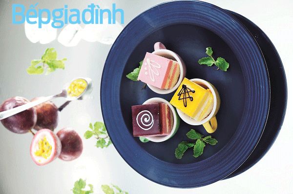 - Lấy bánh trong tủ ra, tiếp tục đổ hỗn hợp chanh dây, si-rô dâu, chocolate ở trên vào. Để bánh ở ngăn mát tủ lạnh 2 giờ, đông lại.
