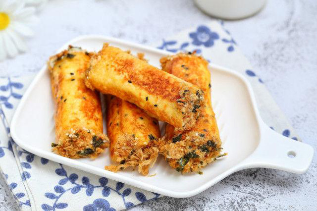 Đĩa bánh mỳ cuộn ruốc chiên vàng ươm cho ngày lạnh giá