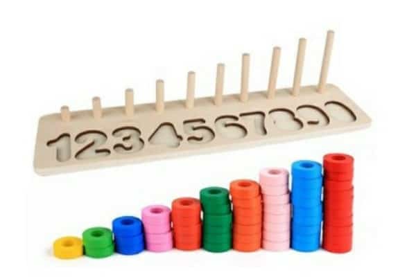Đồ chơi toán học hay chữ mẹ có thể tận dụng ghép chung với các đồ chơi khác. Ví dụ xâu hạt chữ, cát động lực (vẽ chữ trên cát),… Hoặc mẹ mua những bộ riêng như bộ cọc số đếm, bảng chữ cái gỗ. Sách tương tác chủ đề số và chữ cũng rất hấp dẫn, đa dạng trò chơi cho con khám phá. Như Sóc nhà mình thì thích làm quen chữ và số qua sách tương tác hơn.