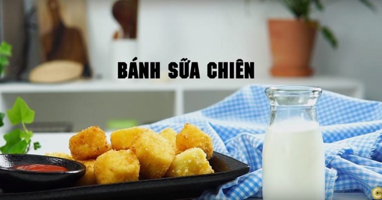 Bánh sữa chiên với phần nhân sữa béo ngậy, thơm nồng, cùng lớp vỏ ngoài giòn tan là một món ăn vặt dễ làm, được các em nhỏ rất yêu thích.
