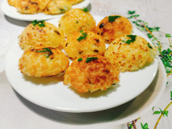 Từng miếng cơm vàng thơm, bên ngoài vàng giòn rụm, bên trong mềm thơm béo.