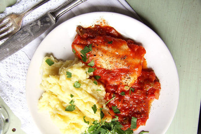Phi lê cá sốt cà chua - món ăn yêu thích của trẻ. Ảnh Internet