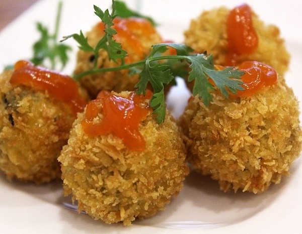 - Trộn cua, khoai tây, cà rốt và nêm chút gia vị. Sau đó viên thành những viên nhỏ và chiên giòn trên chảo nóng.