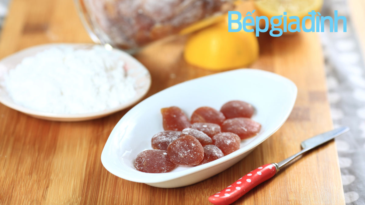 - Kế tiếp, bạn rây 1 lớp đường bột phủ đều thành 1 lớp mỏng áo lên kẹo. Nạy từng viên kẹo vừa tạo hình trên giấy nến, cho vào hũ, đậy kín, dùng dần.