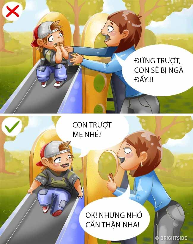 Cha mẹ quá bao bọc và lo sợ con bị ngã, bị tổn thương khi chơi đùa sẽ tạo nên 1 rào cản giữa trẻ và các hoạt động xung quanh, cũng như khiến con lệ thuộc nhiều hơn. Điều này khiến con khó tiếp cận với mọi người. Vì vậy, hãy để cho trẻ được tự do chơi đùa, chấp nhận ngã thì tự đứng dậy, trầy da xước tay chân là điều không quá nghiêm trọng. Chỉ có như vậy con mới có thể tự lập và dễ dàng hòa nhập với mọi người.