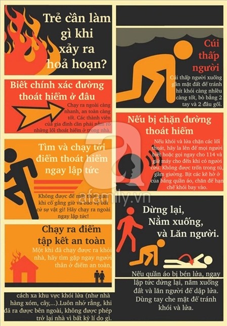 lối thoát hiểm ngay trong nhà. Bạn hãy cùng trẻ vẽ những sơ đồ đơn giản, dễ nhớ và dán chúng ở nơi mà trẻ dễ dàng nhìn thấy nhất hàng ngày. Luôn phải đảm bảo trong nhà bạn có ít nhất 2 lối thoát hiểm.