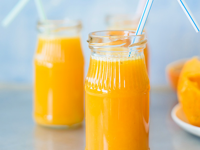 Sữa cam lạnh là món ngon không thể thiếu cho bữa sáng của bé.
