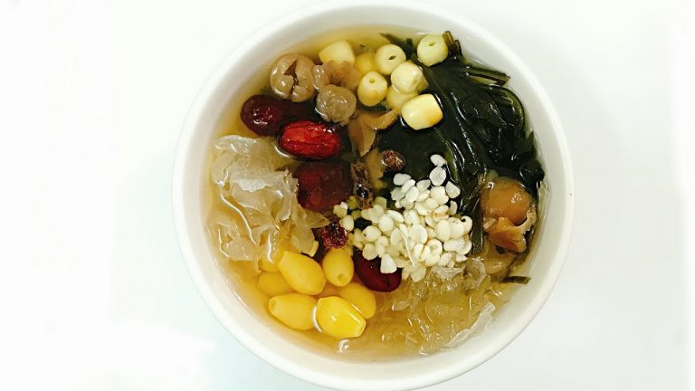 Các nguyên liệu nấu sâm bổ lượng như ý dĩ (hạt bo bo), nhãn nhục (long nhãn khô), nấm tuyết,… có tính hàn giúp giảm nhiệt cho cơ thể. Được kết hợp cùng với táo đỏ và đường phèn khiến bát chè nhiều dinh dưỡng hơn.