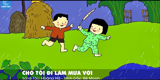 -Cô biết có một bài hát nói về mưa của nhạc sĩ Hoàng Hà đó là bài "Cho tôi đi làm mưa với". Rất hay các con có muốn mang bài hát này đi dự thi không nào ? ( Có ạ)