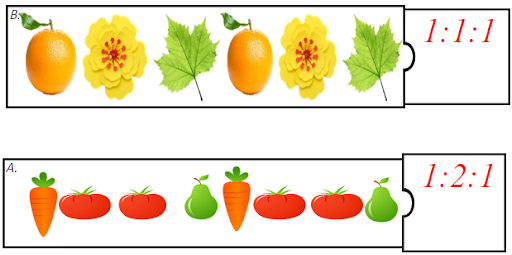 +. Rổ đựng 3 tấm vải màu đỏ, vàng, xanh ( Đỏ có chiều dài ngắn nhất, vàng có chiều dài ngắn hơn, xanh có chiều dài dài nhất)