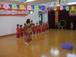 - Sàn sạch sẽ, thoáng mát, an toàn cho trẻ , túi cát, vòng làm đích ném