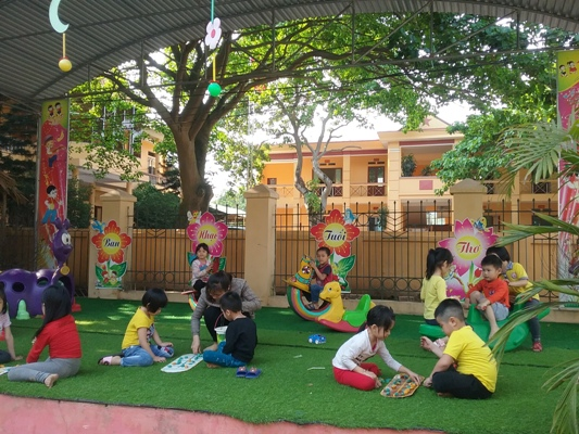 - Ngoài những trò chơi này, chúng mình có thể chơi với đồ chơi ngoài sân trường hoặc những đồ chơi cô mang theo đấy. Các con muốn chơi gì nào?
