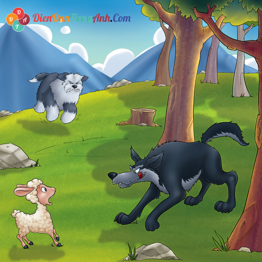+ Khi thấy Cừu non đang nhởn nhơ gặm cỏ Chó Sói đã làm