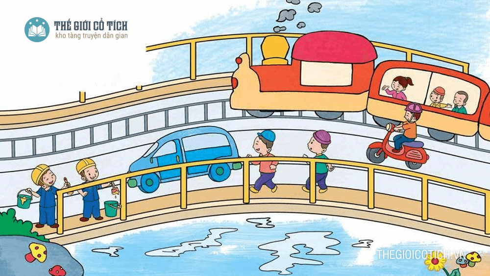 - Giáo dục: Để cho tàu xe và mọi người qua lại thuận tiện các chú công nhân đã rất vất vả để xây lên chiếc cầu thật đẹp do vậy các con phải biết yêu quý và kính trọng các chú công nhân các con nhé.
