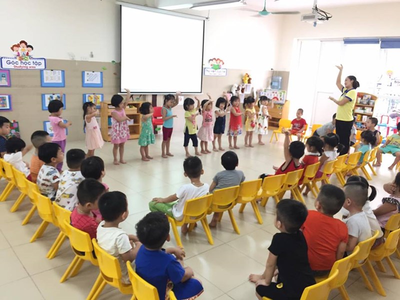 - Cô hát cho trẻ nghe.