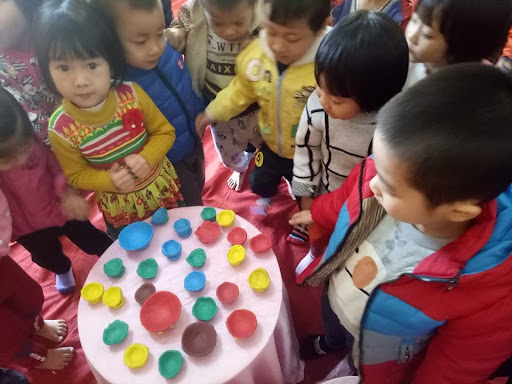- 3 mẹt có bảng con, sáp nặn, tăm tre, các loại hạt… khăn ẩm lau tay.