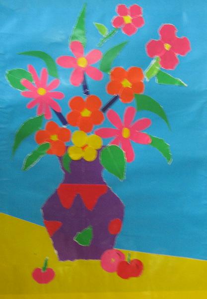 - Tranh mẫu của cô : Bưu thiếp trang trí xé dán hoa có dạng hình vuông, hình chữ nhật, hình tròn, hình tam giác.