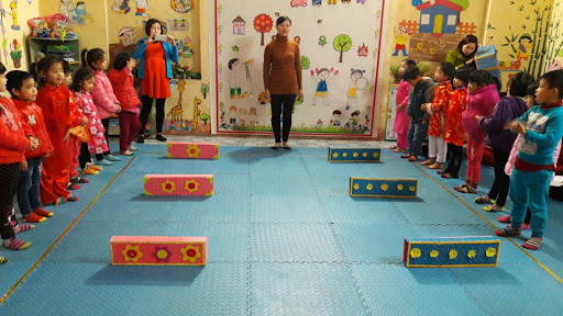 - Cho trẻ thực hiện lần 2 thêm 1 vật cản cao hơn nhằm nâng cao yêu cầu vận động