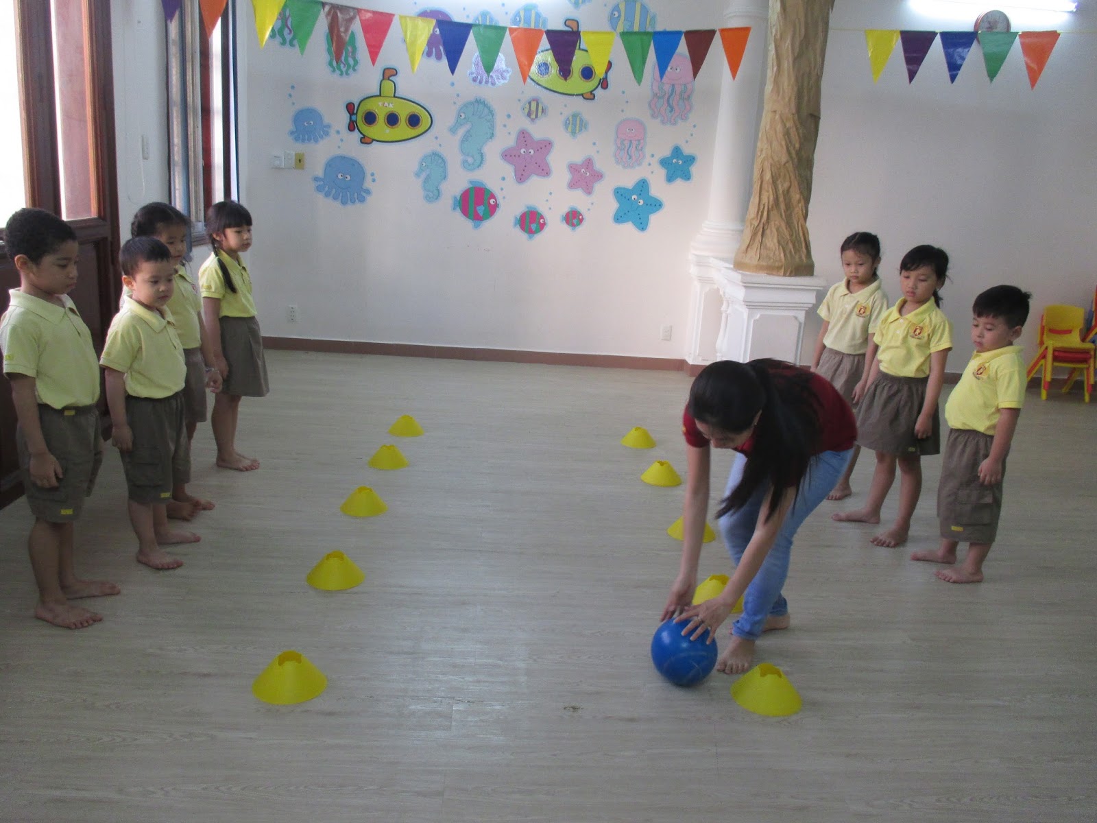 Cô thấy trò chơi lăn bóng cũng rất là hay đấy.