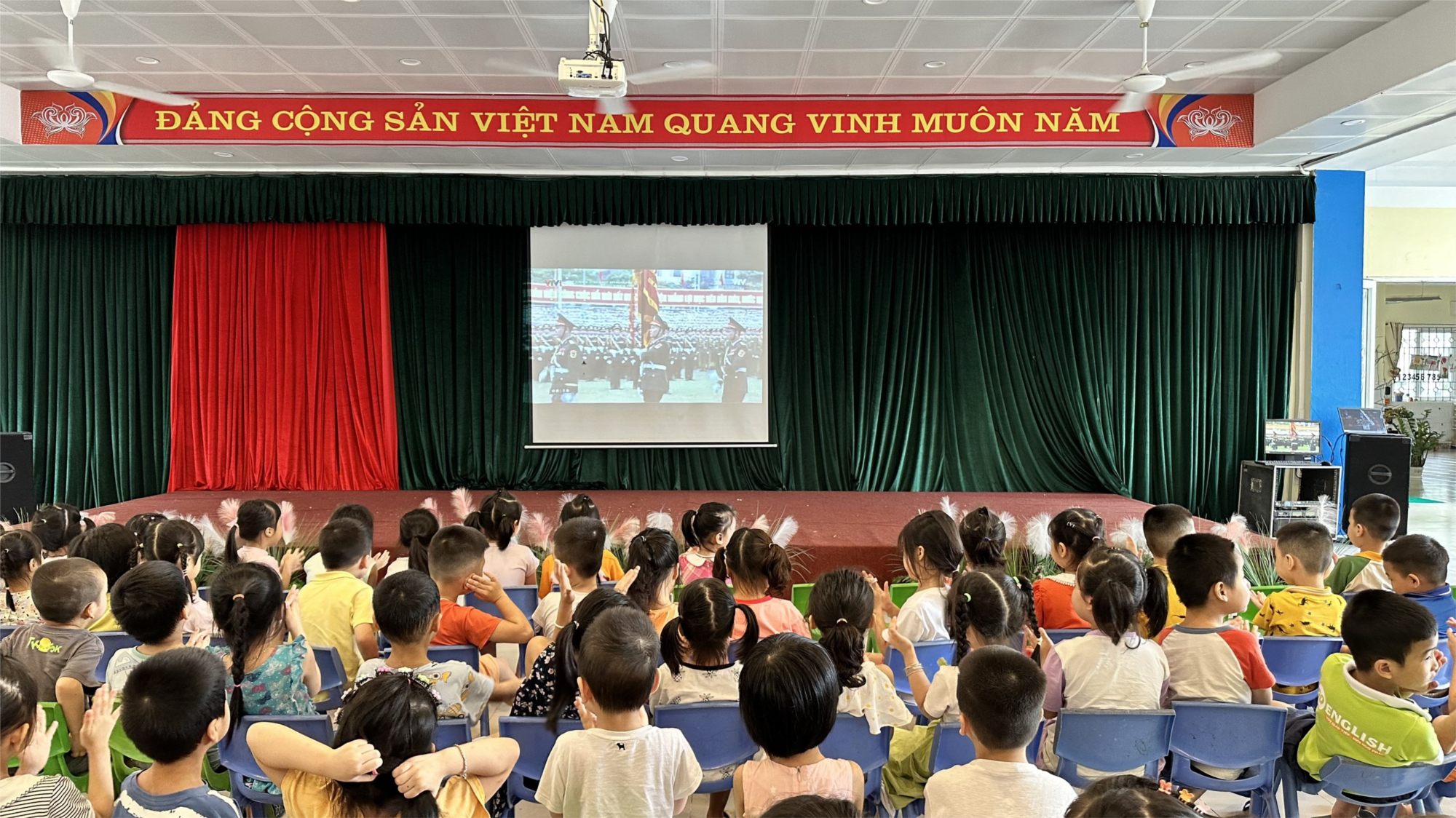 Trong không khí tưng bừng của cả nước hướng về ngày kỷ niệm chiến thắng Điện Biên Phủ, sáng ngày 7/5/2024 cô và trò nhà trường đã tham dự Lễ kỷ niệm 70 năm chiến thắng Điện Biên Phủ qua cầu truyền hình trực tiếp từ sân vận động tỉnh Điện Biên với niềm xúc động và tự hào.