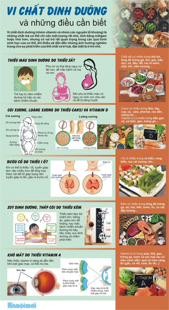 Vi chất dinh dưỡng (nhóm vitamin và nhóm các nguyên tố khoáng) là những chất mà cơ thể chỉ cần một lượng rất nhỏ, tính bằng miligam hoặc nhỏ hơn, nhưng có vai trò rất quan trọng trong các quá trình sinh học của cơ thể, khi thiếu sẽ dẫn đến những ảnh hưởng nghiêm trọng cho sự phát triển của thể chất và trí tuệ, đặc biệt là ở trẻ nhỏ.
