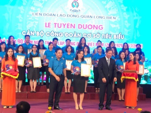 Sáng ngày 23/7/2019, tại Hội trường khu liên cơ quan UBND quận, LĐLĐ quận Long Biên long trọng tổ chức Lễ tuyên dương cán bộ công đoàn cơ sở, nghiệp đoàn tiêu biểu, kỷ niệm 90 năm Ngày thành lập Công đoàn Việt Nam.