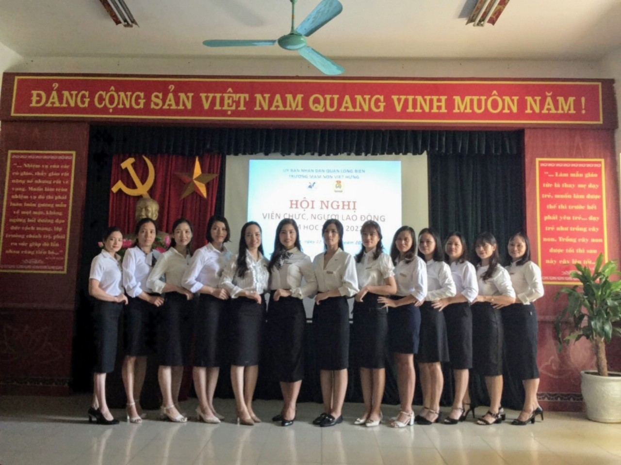 Thực thiện thông tư số 11/TT-BGDDT ngày 19/12/2020 của Bộ giáo dục và đào tạo về việc hướng dẫn thực hiện quy chế dân chủ trong hoạt động của cơ sở giáo dục công lập; Hướng dẫn liên tịch số 08/HD - UBND- LĐLĐ ngày 11/12/2020 của Ủy ban nhân dân và Liên đoàn Lao động quận Long Biên về việc tổ chức hội nghị Cán bộ, công chức, viên chức và Hội nghị người lao động năm 2021; Hướng dẫn số 10/HD- LĐLĐ ngày 13/09/2021 của Liên đoàn Lao động quận Long Biên về quy trình tổ chức Hội nghị cán bộ, công chức, viên chức và Hội nghị người lao động khối Trường học năm học 2021- 2022; Sáng ngày 12/10/2021, trường mầm non Việt Hưng đã long trọng tổ chức “Hội nghị viên chức, người lao động năm học 2021 - 2022” dưới hình thức trực tuyến qua ứng dụng Google meet.