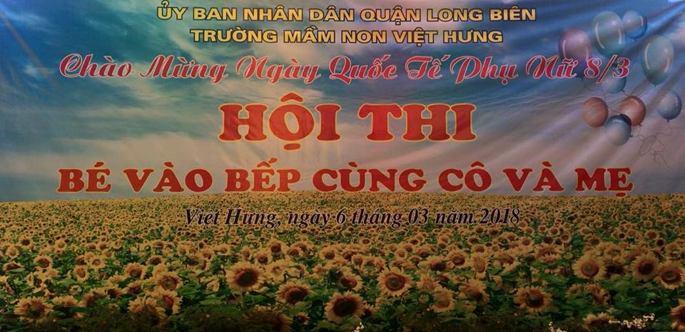 Nhằm thiết thực chào mừng ngày Quốc tế phụ nữ 8/3 gắn liền cùng với những hoạt động vui chơi của các con trong nhà trường để tạo ra những sân chơi bổ ích góp phần không nhỏ cho việc phát triển toàn diện cho trẻ. Sáng ngày 6/3/2018 nhà trường kết hợp với các bậc phụ huynh các lớp tổ chức hội thi với chủ đề " Bé vào bếp cùng cô và mẹ".