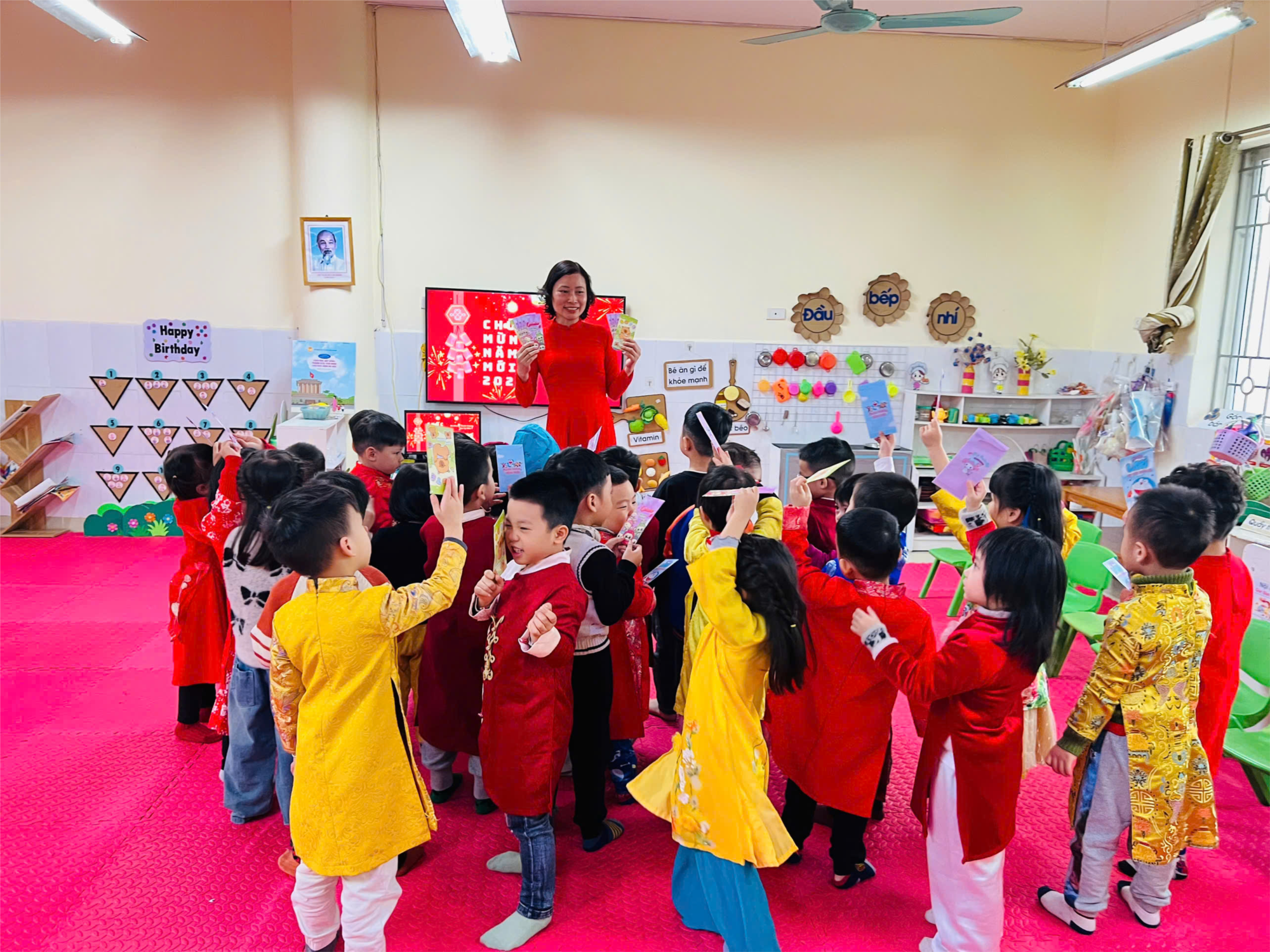 Những hoạt động múa hát mừng xuân, những trò chơi vui nhộn, những câu chuyện đầu năm và lì xì may mắn được các bé vô cùng yêu thích.