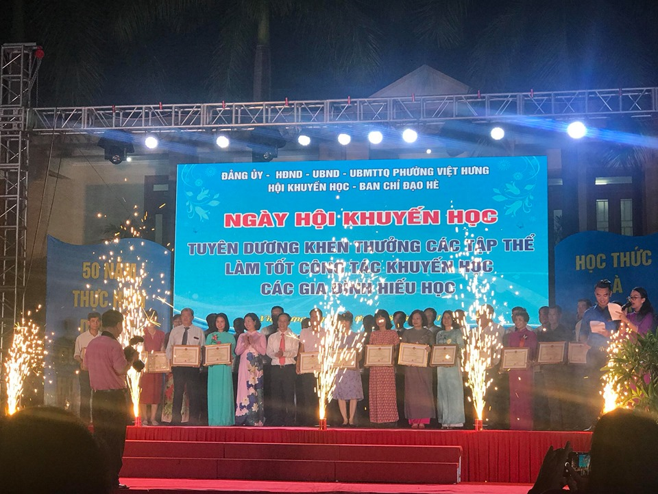Tối ngày 30 tháng 8 năm 2019, Phường Việt Hưng tổ chức lễ tuyên dương các tập thể cá nhân có thành tích trong phong trào khuyến học.Tại đêm tổng kết có rất nhiều các tập thể, cá nhân tiêu biểu được khen thưởng trong đó Trường Mn Việt Hưng là một trong những đơn vị đi đầu về phong trào khuyến học.