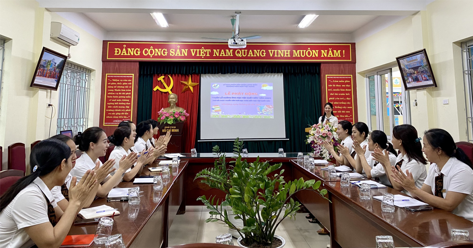 CBGVNV nhà trường tham gia tích cực các hoạt động hưởng ứng, đẩy mạnh phong trào học tập, đọc sách, nghiên cứu tài liệu chuyên môn, mọi lúc, mọi nơi, với phương pháp đọc sách truyền thống thì có nhiều phương pháp tiếp cận với sách bằng nhiều hình thức như thư viện xanh, thư viện số tại nhà trường, góc công đoàn…