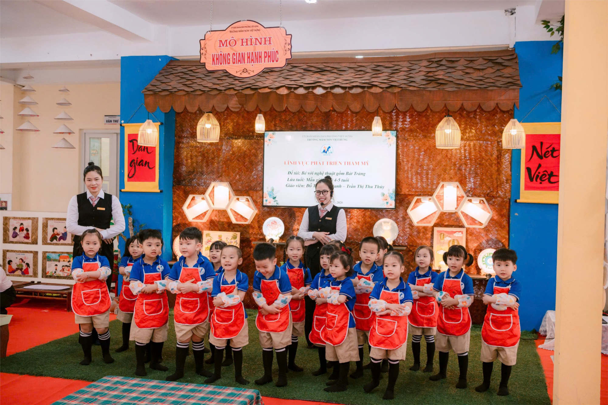 Các bé đặc biệt thích thú khi được trực tiếp tham gia bằng đôi tay nhỏ xinh của mình. Dưới sự hướng dẫn của cô, trẻ đã tạo ra những sản phẩm đơn giản như lọ, tranh tráng gương, trang trí trên đĩa phơ … Hoạt động không chỉ giúp trẻ rèn luyện sự khéo léo, phát triển trí tưởng tượng mà còn giáo dục trẻ biết trân trọng và yêu quý những giá trị văn hóa truyền thống của dân tộc. Đây thực sự là một trải nghiệm bổ ích và ý nghĩa đối với các bé được bạn bè đồng nghiệp đến tham dự khen ngợi, đánh giá cao.