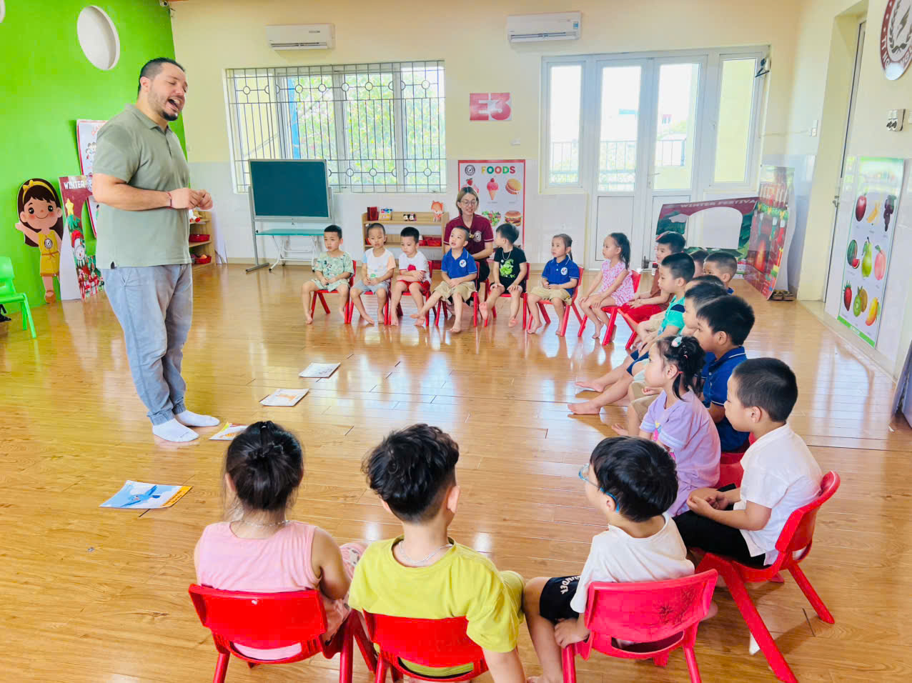 Trẻ được tiếp xúc với ngôn ngữ mới qua trò chơi, bài hát, hình ảnh sinh động, giúp kích thích sự hứng thú và ghi nhớ tự nhiên. Đây là nền tảng giúp trẻ tự tin hơn, phát triển kỹ năng nghe – nói, đồng thời nâng cao khả năng phản xạ ngôn ngữ. Ngoài ra, giờ học còn rèn luyện tính tự lập, sự chủ động và tạo tiền đề thuận lợi cho việc học tiếng Anh ở các cấp học sau. Giờ học còn giúp trẻ hình thành thói quen học tập tích cực, khám phá thế giới xung quanh qua ngôn ngữ thứ hai. Trẻ được rèn luyện kỹ năng làm việc nhóm, giao tiếp với bạn bè và giáo viên bằng tiếng Anh một cách tự nhiên, vui vẻ. Dưới đây là một số hình ảnh của các bé: