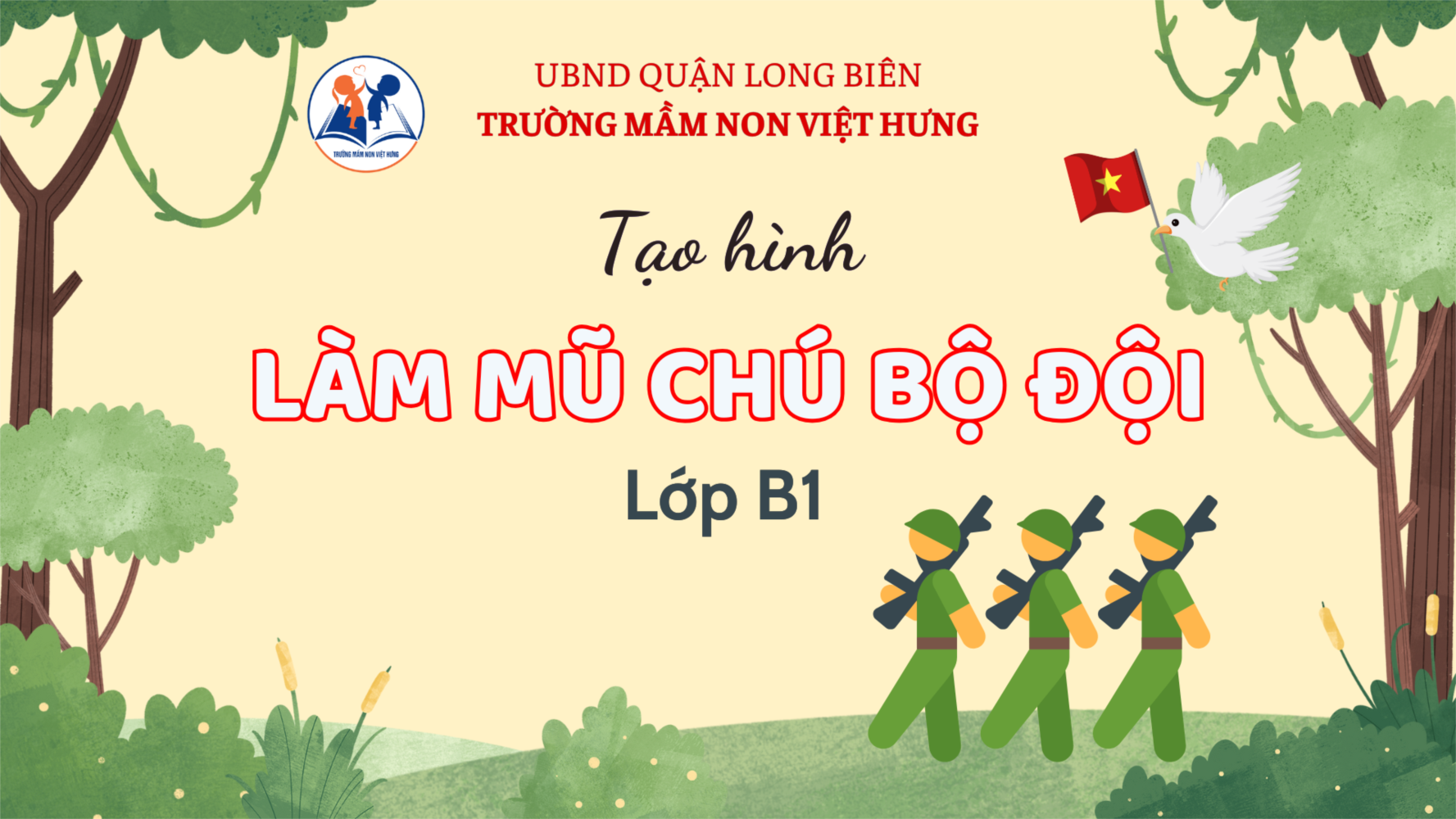 Hướng tới Lễ kỷ niệm 80 năm Thành lập Quân đội nhân dân Việt Nam 22/12, cô và trò lớp B1 đã sáng tạo làm ra những chiếc mũ lá tặng các chú bộ đội. Những người lính cụ Hồ năm xưa khi hành quân rừng núi đã ngụy trang bằng những chiếc mũ nan, mũ lá để tránh kẻ địch. Tái hiện lại, các bạn lớp B1 đã dử dụng những đôi bàn tay xinh xắn khéo léo tạo ra những mũ lá vô cùng ý nghĩa.