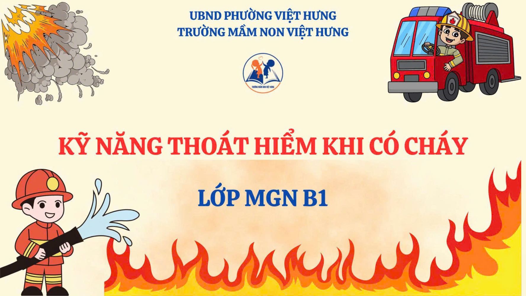 Thông qua các hình ảnh trực quan và trò chơi thực hành, các bé sẽ học cách bình tĩnh, di chuyển an toàn và gọi người lớn hỗ trợ. Đây là một hoạt động bổ ích giúp các con hình thành thói quen an toàn ngay từ khi còn nhỏ.